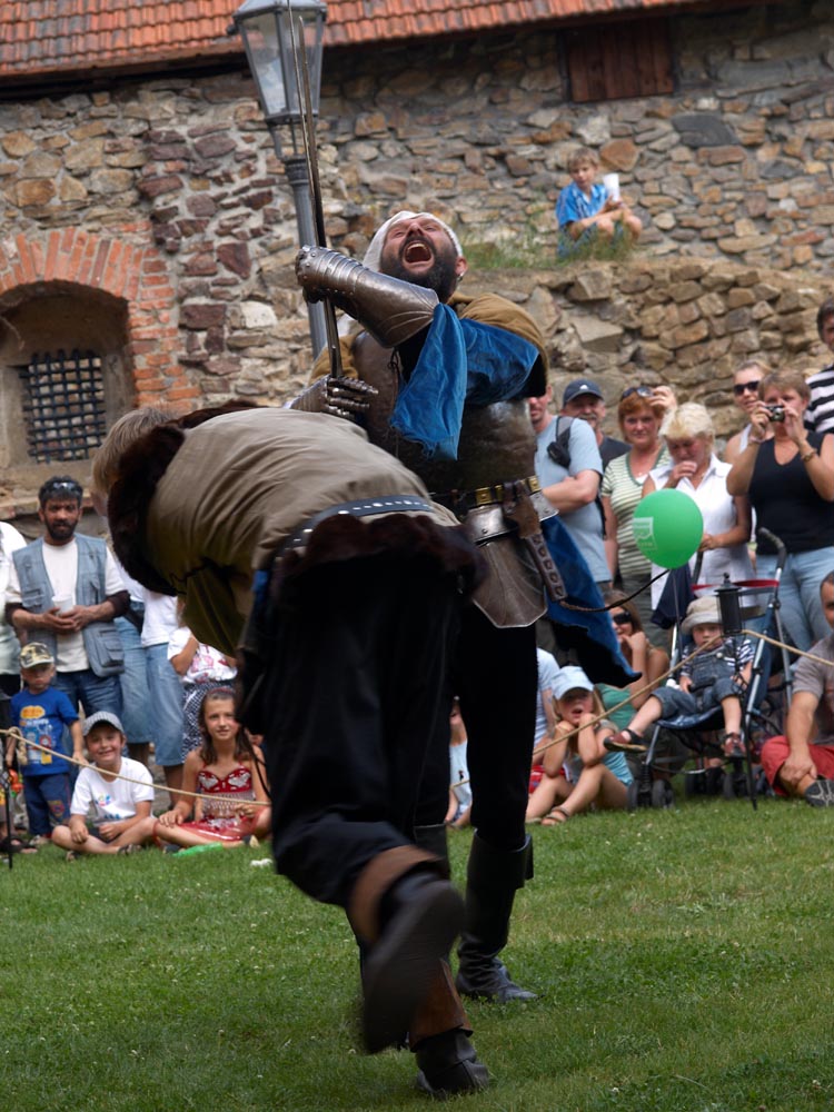 Jedná se o přibližně 15-20 minutové komentované šermířské turnajové vystoupení se čtyřmi rytíři a heroldem.